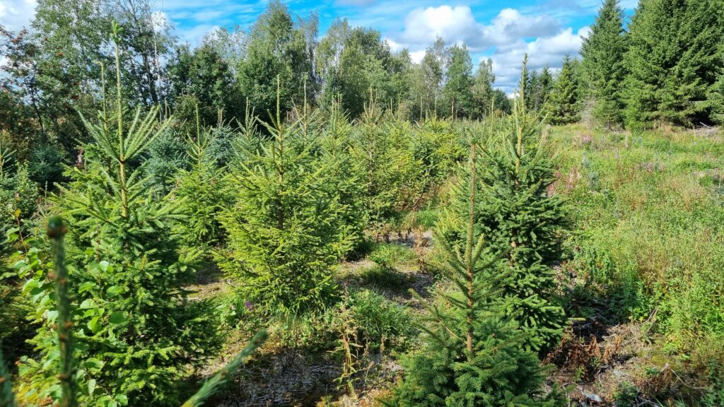 Kuusamon viljelmän lisäksi hankimme vuonna 2018 Muhokselta pienen metsätilan kuusen viljelyä varten. Muhoksen palstalle olemme istuttaneet vuosittain 2- 5 vuotiaita metsä- ja mustakuusia. Kuusen taimet hankimme pääosin kuusamolaiselta Koivurinteen taimitarhalta. Muhoksen viljeltyjä kuusia tulee myyntiin Jouluksi 2025. Joinakin vuosina Kuusamossa on lunta hurjasti joulun aikaan ja joskus metsätiet menevät tukkoon joulun alla. Kuusien saatavuus varmistuu, kun lunta on yleensä puolta vähemmän Muhoksen kuusipalstalla. Tällöin kuusten kerääminen viljelmältä onnistuu maasturilla ja peräkärryllä.